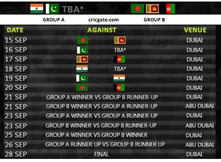 (Sep 11, Abu Dhabi), and the blockbuster India vs. Pakistan